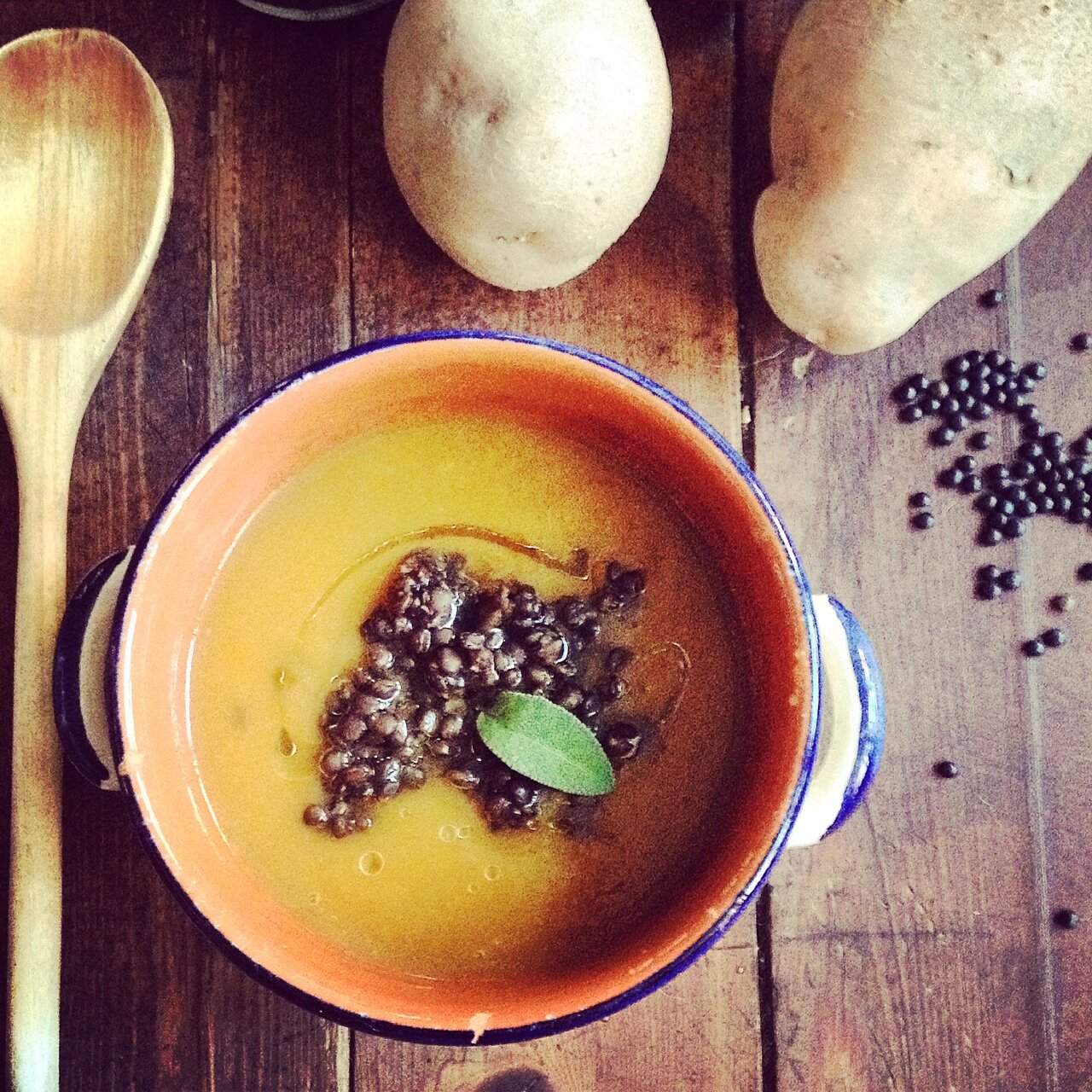 Oggi la ricetta che vorrei condividere con voi è una vellutata semplice, a base di carote e patate, resa particolare dall’aroma della salvia e dalle lenticchie nere Beluga, un legume che ancora non conoscevo e che ho trovato di recente (di origine italiana gente, io le ho prese di Viterbo, ma provengono soprattutto dalla Sicilia).